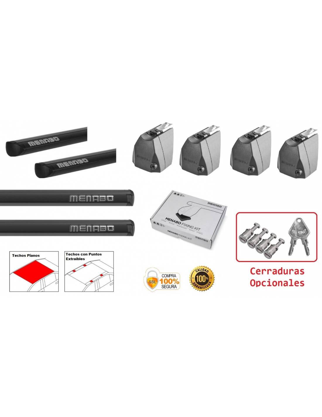 El sistema de travesaños Menabo Delta es compatible con vehículos que no cuentan con barras longitudinales de fábrica. Por lo tanto; la fijación de las barras Delta en el automóvil se realiza directamente en la carrocería con un sistema de fijación específico para su automóvil. (Incluído en el PACK)