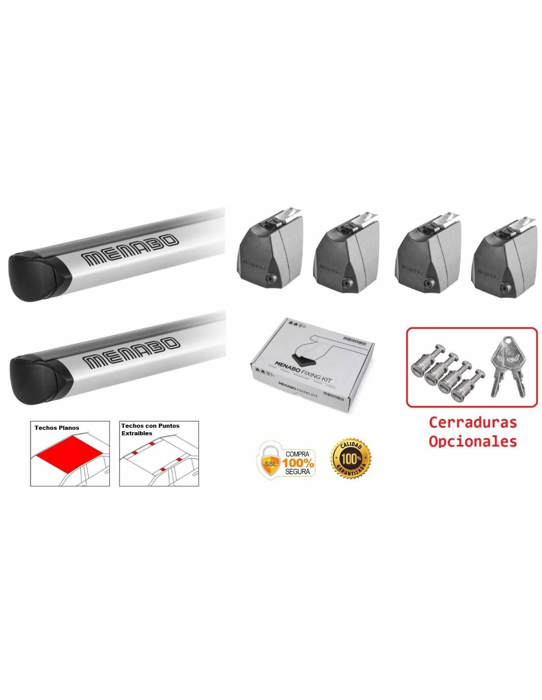 El sistema de travesaños Menabo Delta es compatible con vehículos que no cuentan con barras longitudinales de fábrica. Por lo tanto; la fijación de las barras Delta en el automóvil se realiza directamente en la carrocería con un sistema de fijación específico para su automóvil. (incluído en el pack)