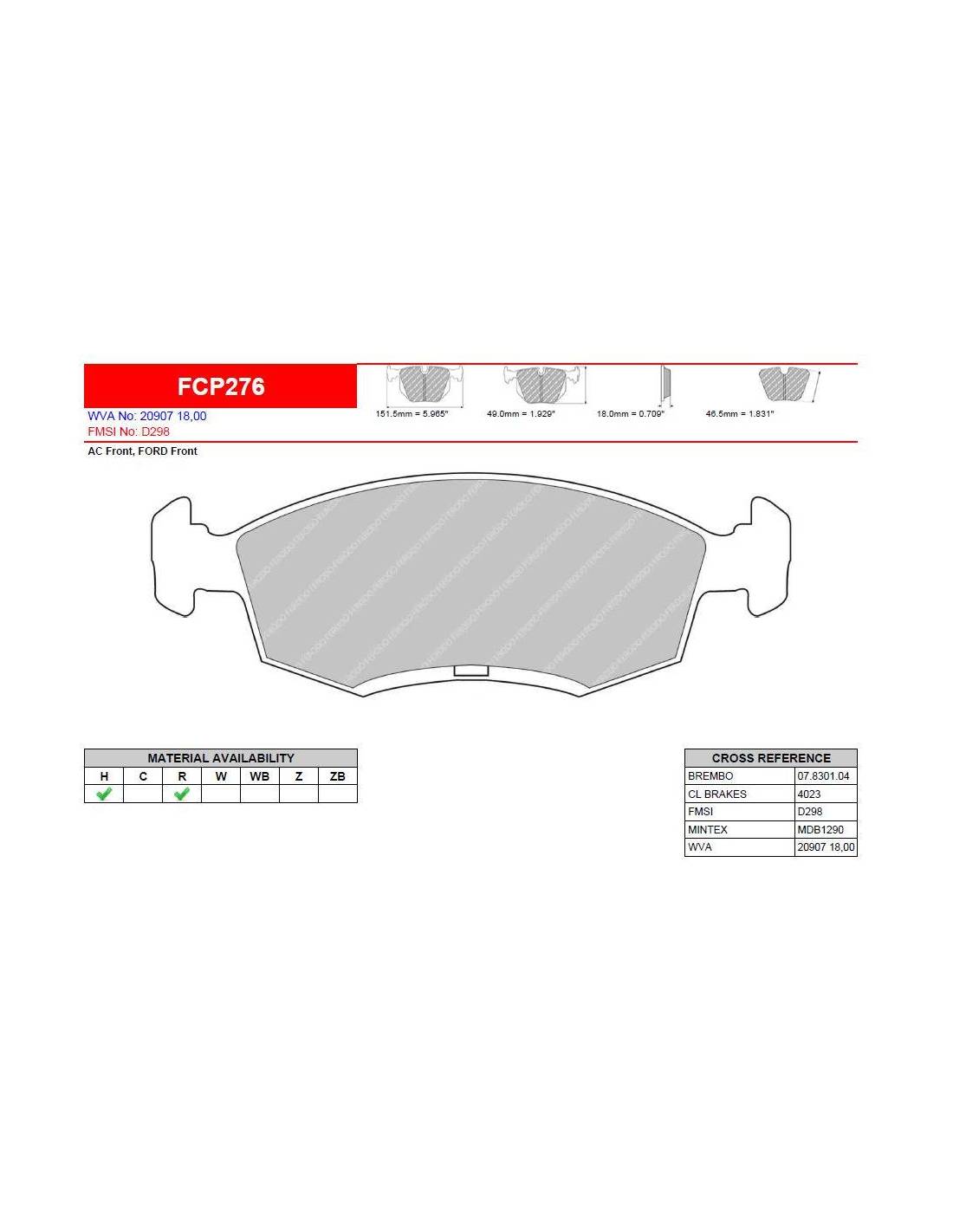 Pastillas FERODO RACING DS2500 para AC Cobra Motor 7 con Referencia FCP276