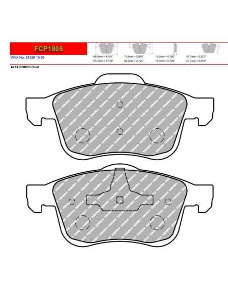 Pastillas FERODO RACING DS2500 para ALFA ROMEO 159(939) Motor 1.9 JTDM 16V con Referencia FCP1805