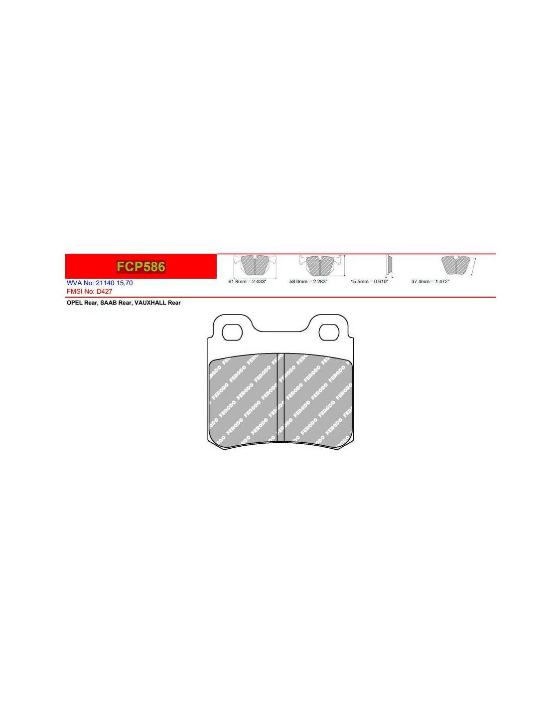 Pastillas FERODO RACING DS2500 para SAAB 900 Motor 2.0 16V con Referencia FCP586