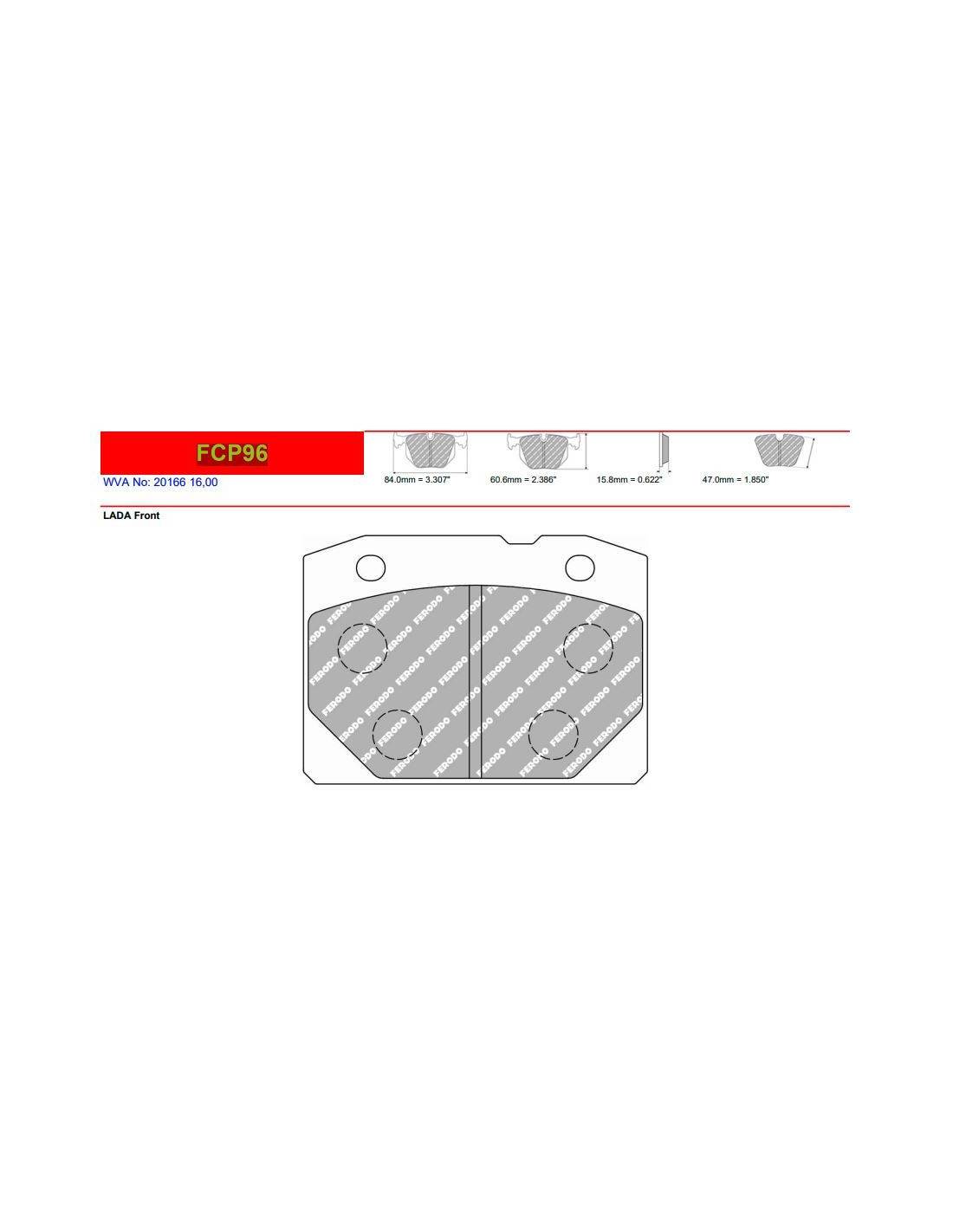 Pastillas FERODO RACING DS2500 para LADA Toscana Motor 1.3 con Referencia FCP96