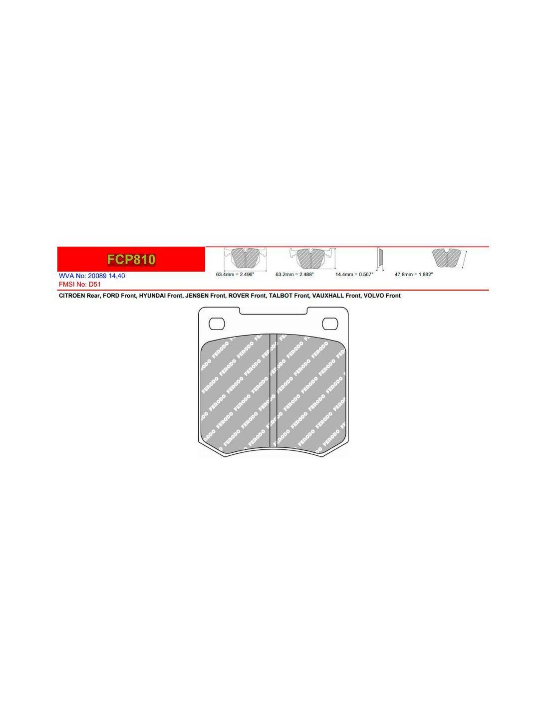 Pastillas FERODO RACING DS2500 para ROVER Ital Motor 1.7 con Referencia FCP810