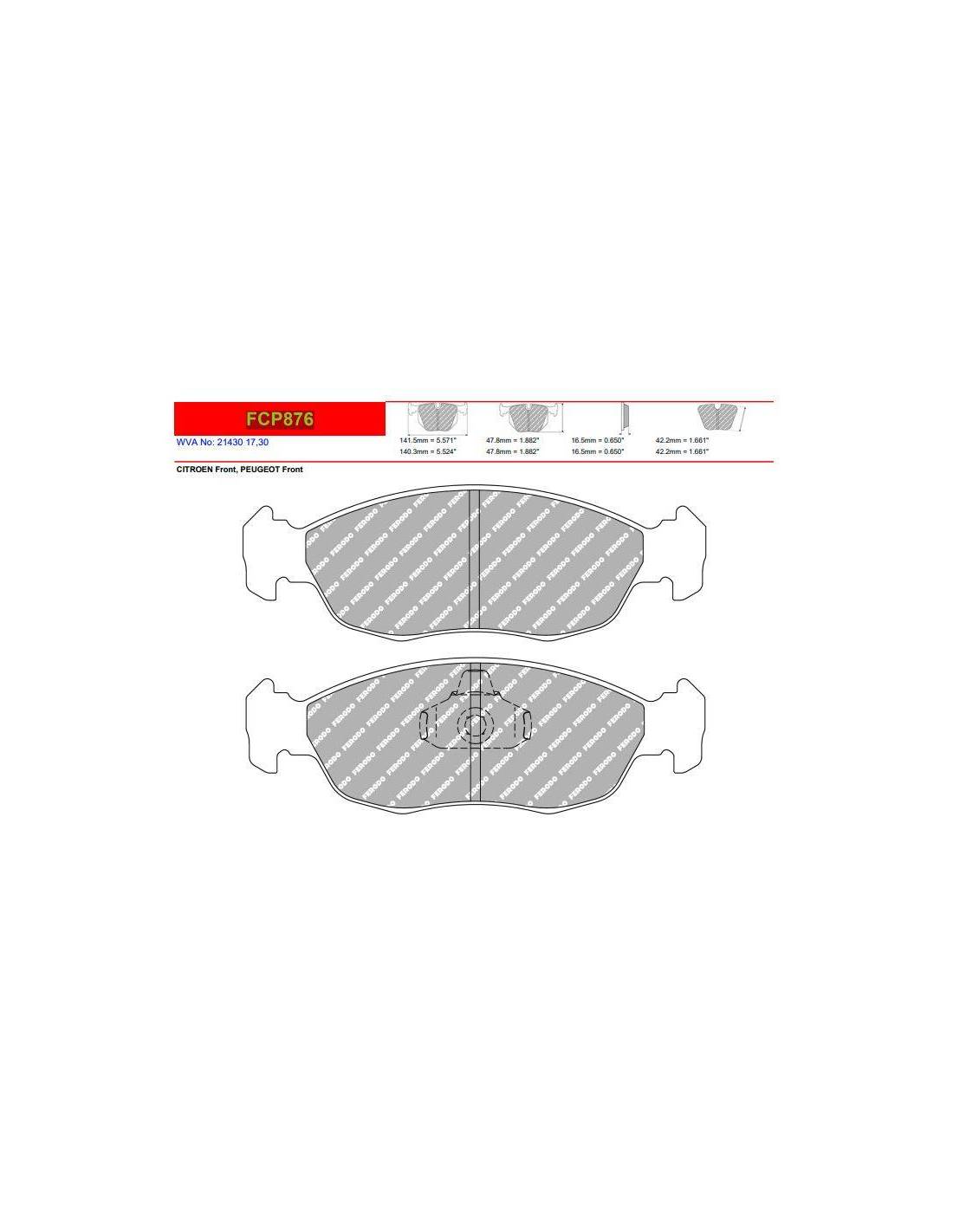 Pastillas FERODO RACING DS2500 para CITROEN Xsara Motor 1.4 i Saloon con Referencia FCP876