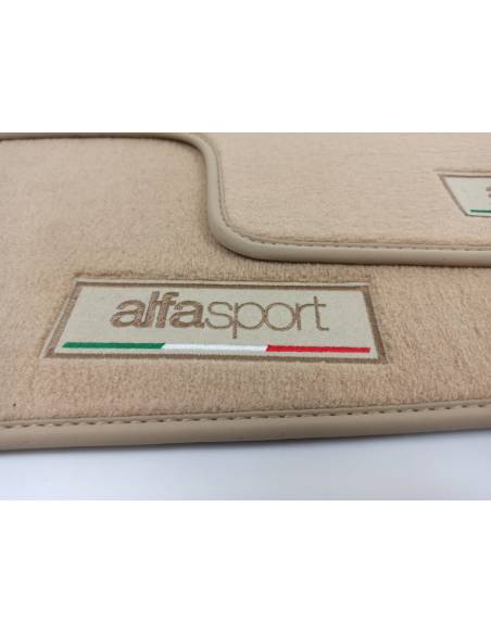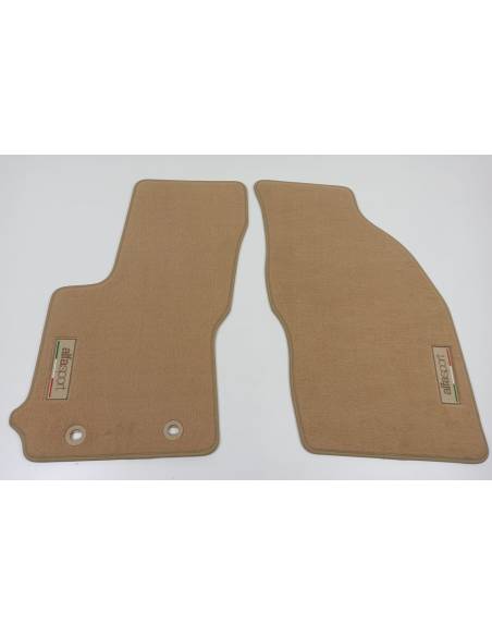 Alfombrillas Beige para Alfa Romero MITO (2008-Presente) con bordados ALFA SOPORT en ambas alfombrillas delanteras.