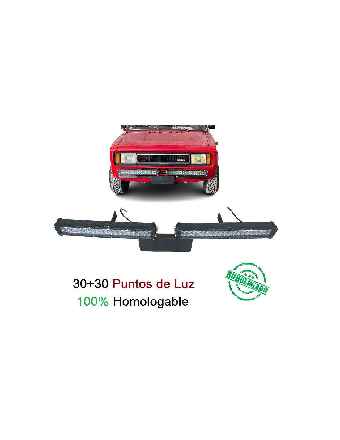El soporte es a medida y curvado según el frontal del vehículo con un acople perfecto al chasis, además de estar hecho de forma reforzada para soportar cualquier torsión. Como punto extra los faros se pueden regular en altura de forma individual, además el soporte tiene carriles para ajustar medida en profundidad hacia la carrocería.
