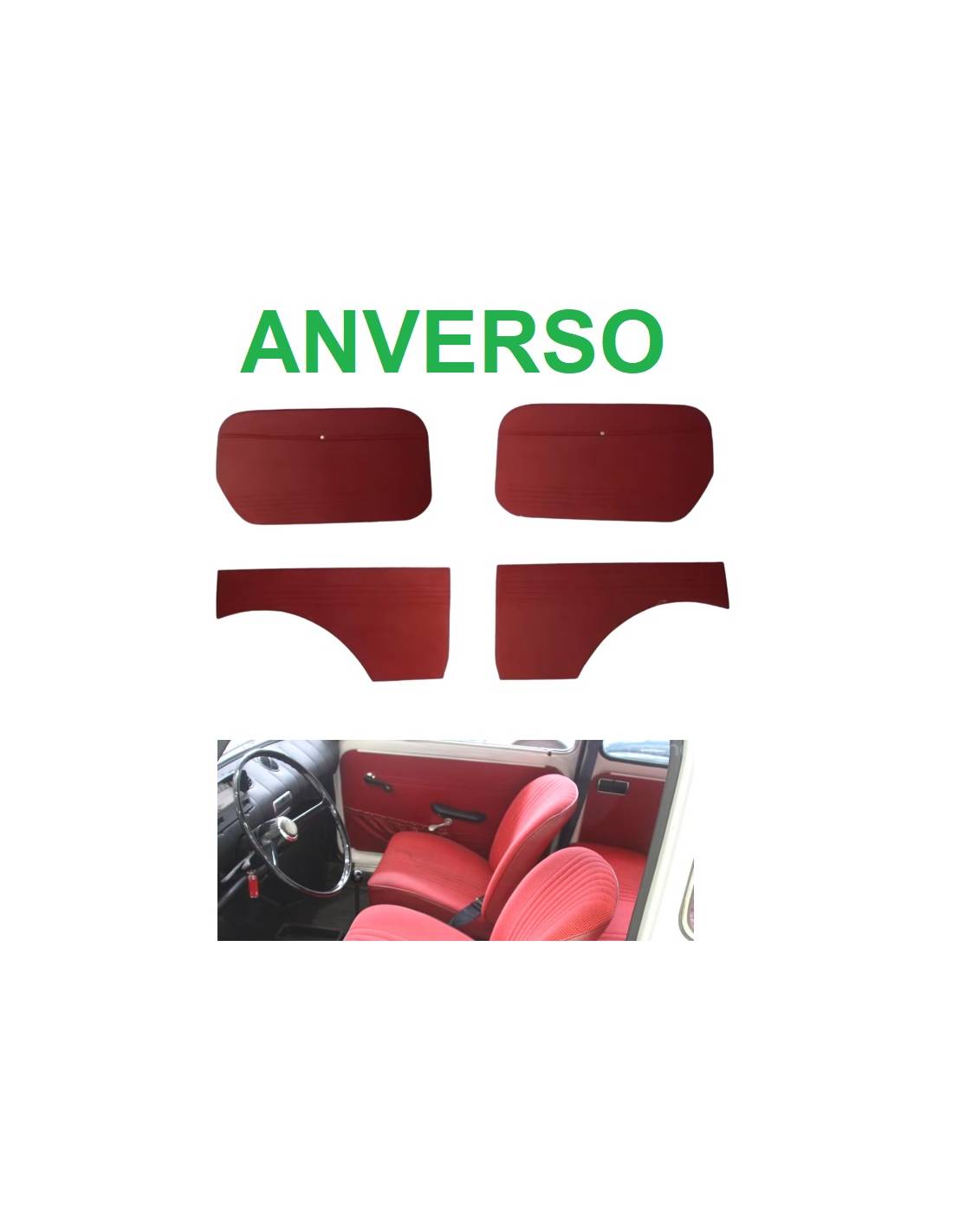 KIT Completo de 4 paneles para SEAT 600D en Pilipiel de máxima calidad lavable color rojo, con costuras y bolsillos delanteros.