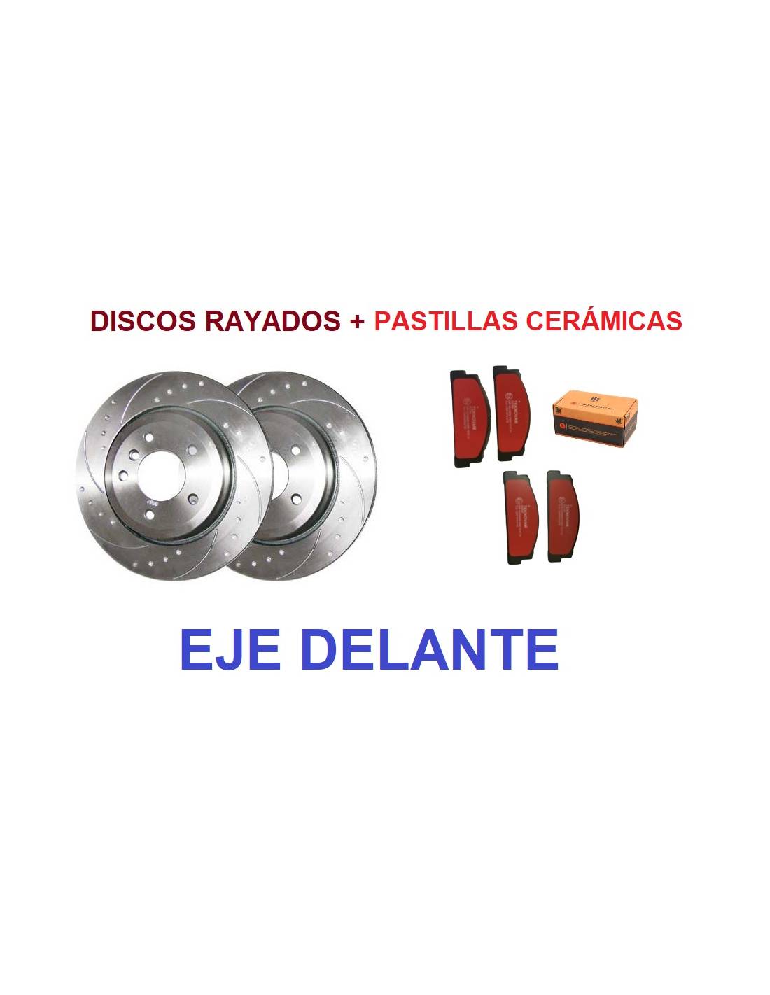 Compuesto de Pareja de discos rayados más pastillas Cerámicas, ideal uso racing.