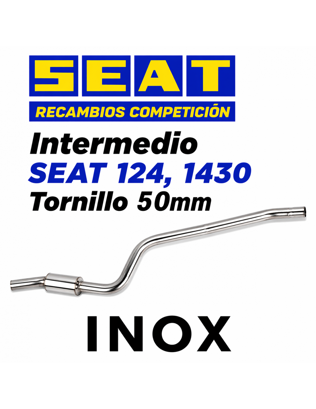 Silencioso intermedio deportivo diseñado para SEAT 124 y 1430, especialmente en motores 1430 y 1.6 FU, 2000, 1800 y 1600cc CON DIRECCIÓN DE TORNILLO OEM, pensado para mejorar el flujo de gases y completar una línea de escape optimizada.