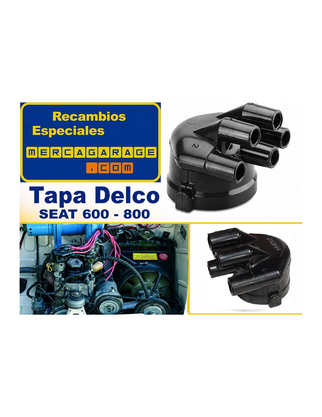 Tapa de distribuidor (Delco) para SEAT 600 D, E y algunas versiones L, revisar antes de compra, diseñada para vehículos clásicos SEAT 600 y SEAT 800, garantizando una correcta distribución de la chispa hacia las bujías.